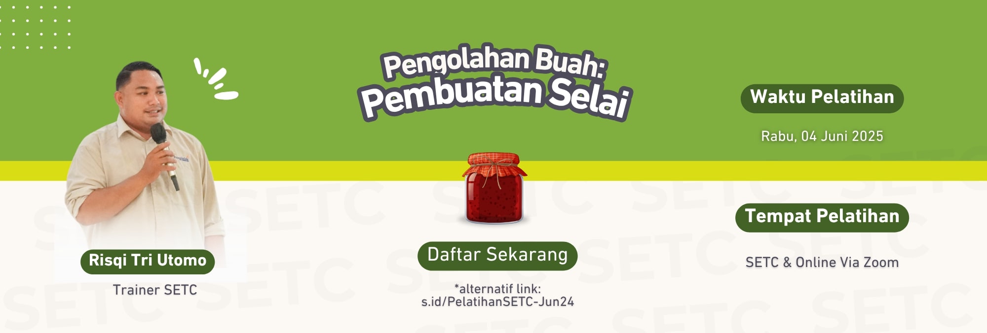 Rabu, 4 Juni 2025 | 09:00 - 11:00 WIB | Hubungi SETC untuk harga pelatihan. |